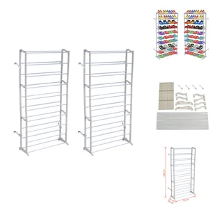 Te półki na buty są wykonane z białego plastiku z metalowymi rozpórkami i oferują miejsce na 40 par butów. Każda półka ma 10 półek, aby uporządkować wszystkie buty. Ma kompaktowy rozmiar z idealnie małymi przegródkami. Półki można łatwo zmontować bez użycia narzędzi. Kolor: białyMateriał: