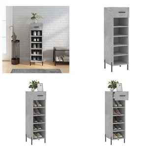 Szafka na buty betonowa szara 30x35x105 cm materiał drewnopochodnyUtrzymaj porządek w swoim domu dzięki tej eleganckiej szafce na buty!Trwały materiał: Drewno konstrukcyjne to materiał o wyjątkowej jakości i gładkiej powierzchni, który charakteryzuje się wytrzymałością, stabilnością i odpornością na wilgoć. Mnóstwo miejsca do przechowywania: Dzięki 1 szufladzie i 5 otwartym przegrodom, ta szafka na buty oferuje mnóstwo miejsca do przechowywania wszystkich rodzajów obuwia. Wytrzymała górna półka: