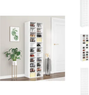 Kolor: białyMateriał: Materiał drewnopochodnyWymiary: 54 x 34 x 183 cm (dł. x szer. x wys.)Wysokość półki: 15 cm każdaZ 22 przegródkamiŁatwe czyszczenie wilgotną szmatkąAby zapobiec przewróceniu się produktu, należy go przymocować za pomocą dołączonego uchwytu ściennego. Uwaga: Śruby i kołki rozporowe do mocowania do ściany nie wchodzą w skład zestawu.