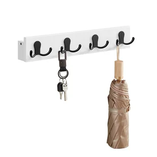 Funkcjonalny wąski wieszak ścienny z 4 podwójnymi haczykami i półką na dekoracje, ozdoby w stylu skandynawskim