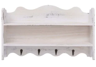 Ich ciekawy design bardzo często jest w stanie odmienić nawet nudny aranżacyjnie przedpokój nadając mu oryginalnego charakteru. Wieszak ścienny nie musi również znajdować się jedynie w przedpokoju, tworząc oryginalną aranżację można wykorzystać go np. w łazience zawieszając ręczniki, półki natomiast mogą eksponować kosmetyki. to piękny wieszak z dwiema półkami w stylu vintage. Niebanalny kształt i efekt zużycia sprawiają, że jest on wyjątkowo oryginalny.