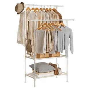 Ten wieszak na ubrania to idealne rozwiązanie dla każdego, kto szuka stabilnego i wytrzymałego miejsca do przechowywanie swoich ubrań, butów i toreb. Dzięki dwóm drążkom na ubrania i podwójnej półce, ten wieszak na ubrania zapewni wystarczającą przestrzeń do przechowywania wszystkich Twoich rzeczy. Łatwy w złożeniu, nie wymaga żadnych narzędzi, co oznacza, że możesz go szybko zainstalować w swojej sypialni, garderobie lub przedpokoju. Ta lekka i przenośna konstrukcja waży tylko 3 kg, dzięki czemu można ją łatwo przetransportować w dowolne miejsce, na przykład na balkon, aby wysuszyć pranie. Rano wystarczy tylko spojrzeć na ten wieszak na ubrania, aby wybrać odpowiedni strój i cieszyć się większym komfortem w swoim codziennym życiu.