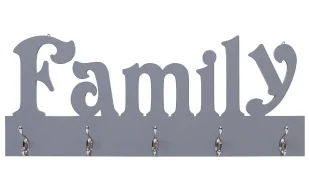 Ponieważ przedpokój to wizytówka domu, i to z jego perspektywy oceniamy mieszkanie warto zadbać o ład i harmonię w tym wnętrzu. to efektowny wieszak ścienny z pięcioma wytrzymałymi haczykami - co jest bardzo ważne przy ciągłym używaniu wieszaka. Delikatny szary napis "Family" doskonale uzupełni wnętrze nie przytłaczając go i wprowadzi przytulną atmosferę. Doskonale odnajdzie się w wielu stylach aranżacyjnych: minimalistycznym, skandynawskim czy też nowoczesnym.