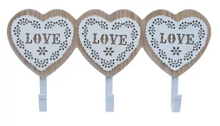 wieszak drewniany potrójny z podstawami w kształce serduszek z napsem "LOVE"