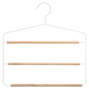 Wieszak na spódnice i spodnie to produkt przeznaczony dla tych, którzy są miłośnikami komfortu i minimalizmu. Jest to przedmiot niezbędny w każdej garderobie. Nie może zabraknąć go także w Twojej szafie. Posiada wymiary 35 cm x 36 cm (długość x wysokość), przez co pozwoli komfortowo rozwiesić różne elementy odzieży. Wieszak składa się z trzech poziomów, przez które z łatwością przewiesisz spodnie, lub zawiesisz spódnice.