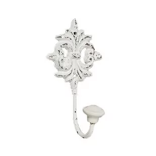 Wieszak ścienny żeliwny w kolorze białym matowym, lekko przecieranym w kolorze szarości. Wieszaki mogą służyć do przedpokoju na klucze,do kuchni, łazienki na ręczniki, pokoju dziennego czy nawet salonu. Materiał : metal, ceramiczne końcówki Kolor : biały postarzany Wymiary 1 szt : wysokość 13 cm szerokość 8 cm Materiały: