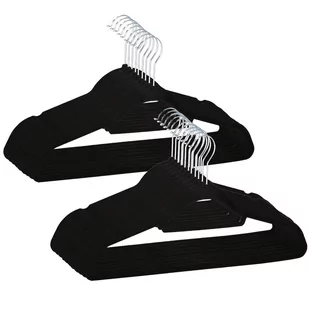 Zestaw złożony z 20 wieszaków welurowych w czarnym kolorze idealnie sprawdzi się w każdej garderobie lub szafie, dbając o ład i porządek. Dzięki nim każde ubranie będzie odpowiednio posegregowane i łatwe w wyciągnięciu. Dodatkową zaletą wieszaków jest welurowe wykończenie i specjalne wcięcia po bokach, dzięki którym bluzki, koszule, marynarki i sukienki nie zsuwają się. Ponadto dzięki wieszakom garderoba nie będzie wymagać prasowania, co pozwoli zaoszczędzić wiele czasu. Metalowy haczyk posiada funkcję obrotu o 360 stopni, która umożliwia powieszenie wieszaka w przeróżnych miejscach.