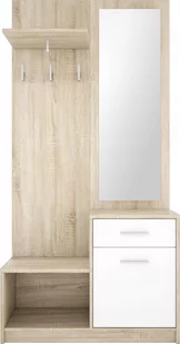 Garderoba przedpokój z lustrem sonoma biały LUCAS Kompaktowy zestaw 4 w 1 ✅szafka ✅szuflada ✅lustro ✅wieszak Wymiary ✅szerokość 90 cm ✅głębokość 31 cm ✅wysokość 184 cm Kolory mebla dąb sonoma oraz ciepły biały matowy PIELĘGNACJA Mebel na całej powierzchni można czyścić przy pomocy miękkiej szmatki oraz dedykowanych środków do pielęgnacji mebli (np. w sprayu). Unikać stosowania silnych środków chemicznych oraz wody. OPAKOWANIE Meble są dostarczane w fabrycznych opakowaniach, zawierają instrukcję montażu oraz wszelkie niezbędne akcesoria montażowe. DOSTAWA I ODBIÓR Meble są dostarczane przez dwu-osobowe zespoły (kierowca + pomocnik). Prosimy o dokładne obejrzenie przesyłki przed podpisaniem protokołu odbioru.
