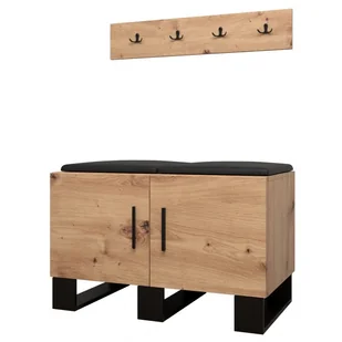 Garderoba szafka na buty z panelami tapicerowanymi i wieszakami meble do przedpokoju na wysokich nogach ARTIN 21 dąb artisan