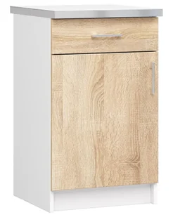 Materiał: Wysokiej jakości laminowana płyta meblowa o klasie higieny E1. Kolor: korpus: biały, fronty: dąb sonoma. W naszej ofercie posiadamy także inne szafki kuchenne . Kliknij i stwórz swój wyjątkowy zestaw mebli.