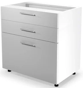 Tym razem zdecydowali się wyprodukować szafkę dolną z szufladami , która wspólnie z pozostałymi meblami z kolekcji stworzy funkcjonalną i dobrze wyglądającą kuchnię zabudowaną. to solidny mebel, wykonany z najwyższej jakości materiałów, z dbałością o każdy, nawet najmniejszy szczegół. Biały korpus to część mebla wyprodukowana z wytrzymałej laminowanej płyty o klasie higieny E1. To surowiec o doskonałych walorach estetycznych oraz niesamowitej trwałości i funkcjonalności. To produkt na lata.