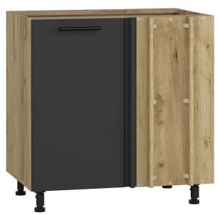 Prezentowana narożna szafka kuchenna to mebel wykonany z najwyższej jakości materiałów, z dbałością o każdy, nawet najmniejszy szczegół. Korpus to część mebla wyprodukowana z wytrzymałej laminowanej płyty o klasie higieny E1. To surowiec o doskonałych walorach estetycznych oraz niesamowitej trwałości i funkcjonalności. Narożna szafka to produkt na lata. Laminowane meble są odporne na wilgoć, zarysowania i inne uszkodzenia mechaniczne, czyli na wszystko to na co każdego dnia narażone są meble w królestwie kulinarnych zapachów i smaków.