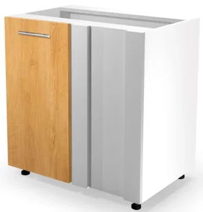 Prawdziwym hitem w funkcjonalności mebla stanowią regulowane nóżki, które w prosty sposób pozwolą Ci ustawić narożną szafkę kuchenną w zależności od potrzeb Twojego wnętrza. Na wyróżnienie zasługują również zawiasy frontów z mechanizmem cichego domykania, które znacząco podnoszą komfort użytkowania. System skutecznie wyhamowuje drzwi zamykane z rozmachem. Dzięki niemu fronty otwierają się łatwo i niezawodnie oraz delikatnie i cicho domykają. To idealne rozwiązanie dla osób ceniących sobie spokój albo dla tych, którzy mają dzieci.
