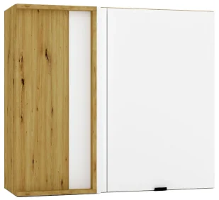 Innowacyjne podejście do designu kuchni ucieleśnia kolekcja szafek Gisel, która łączy w sobie funkcjonalność, prostotę i ponadczasową estetykę. Kuchnia Gisel urzeka białymi, matowymi frontami i eleganckim korpusem w kolorze dąb artisan, nadając wnętrzu harmonii i subtelnego szyku. Dopełnieniem tej wyrafinowanej kolekcji są minimalistyczne uchwyty, które podkreślają nowoczesność i styl, jednocześnie zachowując pełną funkcjonalność. Szafka narożna wisząca Gisel marki Elior to szafka kuchenna, która wprowadza powiew świeżości i elegancji do nowoczesnego wnętrza. Wyobraź sobie kuchnię, w której każdy element jest starannie zaplanowany, a przestrzeń zachwyca prostotą i funkcjonalnością.