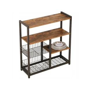 Stylowy i wielofunkcyjny regał kuchenny w klimacie retro-industrialnym to idealne połączenie praktyczności i wyjątkowego designu. Świetnie sprawdzi się jako wolnostojąca wyspa kuchenna, dodatkowa półka lub pomocnik kuchenny. Design retro-industrialny połączenie ciemnego drewna z metalową ramą Wielopoziomowa półka idealna na sprzęty kuchenne, naczynia, przyprawy lub dekoracje Uniwersalne zastosowanie kuchnia, jadalnia, salon z aneksem kuchennym Wyjątkowy klimat wprowadza ciepło drewna i charakter loftu do Twojego wnętrza Łatwy montaż wszystkie elementy i instrukcja w zestawie Specyfikacja: Wymiary: 80 cm (szerokość) x 95 cm (wysokość) x 35 cm (głębokość) Materiał: płyta MDF Kolor: