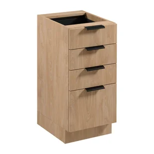 Kuchnia Acari, dzięki swojej uniwersalnej kolorystyce świetnie współgra niemal ze wszystkim, z czym tylko zapragniemy ją zestawić, prosta forma bez zbędnych elementów dekoracyjnych, sprzyja utrzymaniu w nieskazitelnej czystości, wysokie szafki umożliwiające ergonomiczne zagospodarowanie przestrzeni oraz dwa typu wykończenia frontów. Dodatkowo zróżnicowane moduły oraz możliwości wykończenia pozwolą na budowanie dowolnych układów. Korpus i fronty z płyty 18 mm, szlachetny i ponadczasowy odcień drewna na korpusie i dolnych frontach. Uniwersalna kolorystyka frontów górnych oraz szeroki wybór szafek w ofercie uzupełniającej. Prowadnice z systemem metalbox wzmacniają konstrukcję szuflady, wysokie szafki górne, umożliwiają zagospodarowanie przestrzeni do sufitu a dyskretny podchwyt w szafkach górnych ułatwia czyszczenie.