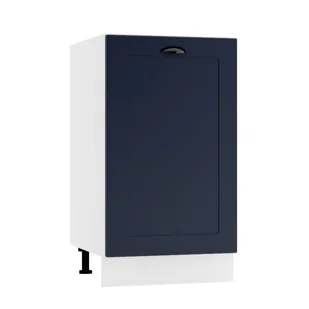 Szafka kuchenna stojąca 45 ADELE D45 P/L posiada korpus w kolorze biały mat wykonany z płyty laminowanej oraz front w kolorze granatowy mat z płyty MDF foliowanej. Szafka posiada praktyczną półkę, która pomoże w organizacji przechowywanych rzeczy. W szafce zastosowano zawiasy z mechanizmem cichego domykania, dzięki czemu zapobiegniemy głośnemu trzaskaniu drzwiczek podczas użytkowania. Szafka posiada uniwersalny montaż frontu, dzięki czemu drzwiczki szafki mogą się otwierać na lewą lub prawą stronę. Regulowane stopki umożliwią dopasowanie wysokości szafki stojącej do wzrostu użytkownika oraz umożliwi zachowanie poziomu wszystkich szafek w razie nierówności podłogi. Szafka kuchenna 45 ADELE D45 P/L to praktyczny element z kolekcji mebli kuchennych firmy Stolkar o szerokości 45 cm umożliwiający zagospodarowanie dolnej przestrzeni o tej samej szerokości.