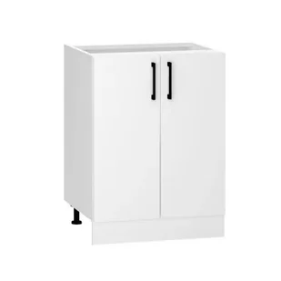 Szafka kuchenna stojąca 60 BONO D60 posiada korpus w kolorze biały mat wykonany z płyty laminowanej oraz front w kolorze biała alaska z płyty laminowanej. W szafce zastosowano zawiasy z mechanizmem cichego domykania, dzięki czemu zapobiegniemy głośnemu trzaskaniu drzwiczek podczas użytkowania. Dwudrzwiowa szafka wyposażona jest w półkę, która posłuży do przechowywania. Regulowane stopki umożliwią dopasowanie wysokości szafki stojącej do wzrostu użytkownika oraz umożliwi zachowanie poziomu wszystkich szafek w razie nierówności podłogi. Szafka kuchenna 60 BONO D60 to praktyczny element z kolekcji mebli kuchennych firmy Stolkar o szerokości 60 cm umożliwiający zagospodarowanie dolnej przestrzeni o tej samej szerokości.