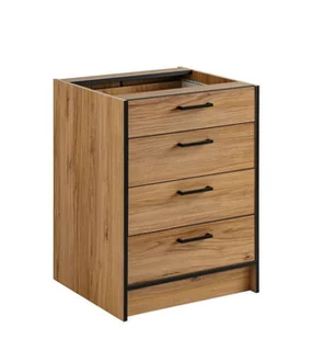 Szafka kuchenna stojąca , Carballo, 40x56x81 cm, dąb warmia, mat. Funkcjonalna szafka kuchenna, która pozwala zagospodarować nawet najmniejszą przestrzeń . W organizacji przechowywania pomogą Ci cztery praktyczne szuflady z mechanizmem cichego domyku , w których możesz umieścić różne elementy wyposażenia kuchni. Dedykowana szafka doskonale prezentuje się również jako uzupełnienie innych mebli kuchennych . Dobierz do niej pozostałe szafki z kolekcji CARBALLO i stwórz piękną i funkcjonalną kuchnię! Najważniejsze cechy szafki kuchennej stojącej: