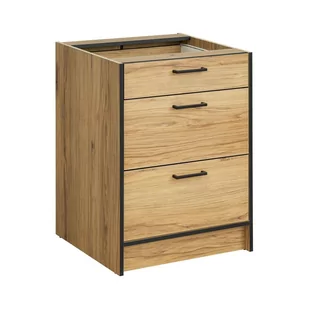 Szafka kuchenna z szufladami , Carballo, 60x56x81 cm, dąb warmia, mat. Funkcjonalna szafka kuchenna, która pozwala zagospodarować nawet najmniejszą przestrzeń . W organizacji przechowywania pomogą Ci trzy pojemne szuflady , w których możesz umieścić różne elementy wyposażenia kuchni. Dedykowana szafka doskonale prezentuje się również jako uzupełnienie innych mebli kuchennych . Dobierz do niej pozostałe szafki z kolekcji CARBALLO i stwórz piękną i funkcjonalną kuchnię! Najważniejsze cechy szafki kuchennej z szufladami: