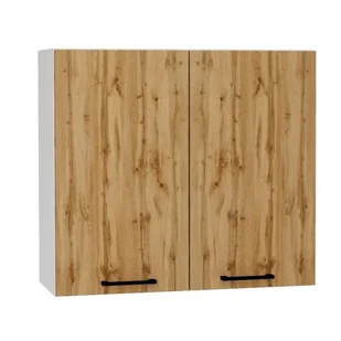 Szafka kuchenna wisząca 80 BONO W80 z kolekcji mebli BONO to szeroka i wysoka szafka dwudrzwiowa w stylu industrialnym, która posiada szerokość 80 cm i wysokość 72 cm. Korpus szafki wykonany jest z płyty laminowanej w kolorze białym, front natomiast to płyta laminowana w kolorze dąb złoty. Szafka kuchenna 80 BONO W80 dwudrzwiowa wyposażona jest w 2 praktyczne półki, które zapewnią sporo miejsca do przechowywania. Szafka posiada cichy domyk w standardzie, przez co zamyka się bez ewentualnego trzaśnięcia. Szafka wisząca z kolekcji mebli BONO pozwoli stworzyć wyjątkową kuchnię. Wszystkie szafki kuchenne można dowolnie łączyć ze sobą, przez co każda kuchnia może być indywidualnie dostosowana do własnych potrzeb.