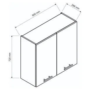 Szafka kuchenna wisząca z ociekaczem 80 VITA W80SU ALU o szerokości 80 cm pozwoli na stworzenie funkcjonalnego i nowoczesnego zestawu mebli kuchennych wyposażonych w zamkniętą suszarkę do naczyń. Szafka kuchenna z ociekaczem VITA W80SU ALU posiada korpus w kolorze białym wykonany z płyty laminowanej oraz front z kolorze biały połysk z płyty laminowanej. Grubość płyt wynosi 16 mm. W szafce zastosowano zawiasy z mechanizmem cichego domykania, dzięki czemu zapobiegniemy głośnemu trzaskaniu drzwiczek podczas użytkowania. Uchwyty metalowe ułatwią otwieranie i zamykanie szafki.