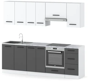 Zestaw kuchenny z blatem modułowy mokka plus 2.4m biała szary biały mat