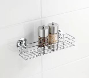 Wykonana z chromowanej stali półka kuchenna sprawdzi się do przechowywania przypraw i ziół. Zawieszona na ścianie pozwoli szybki dostęp i pomoże utrzymać porządek. Dzięki specjalnym, samoprzylepnym podkładkom TurboFix w bardzo prosty i szybki sposób można ją zamontować. Nie wymaga użycia narzędzi ani wiercenia. Dobrze przylega do płaskich i gładkich powierzchni oraz do powierzchni szklanych.