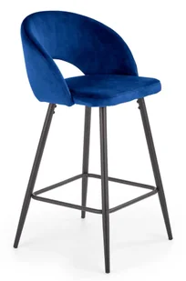 Z gracją podkreśla charakter wnętrza prezentując się przy tym niezwykle elegancko. Wspaniała, ciemnoniebieska tapicerka mebla jest niezwykle efektowna i miękka w dotyku, a czarna, stabilna podstawa dodaje mu szczyptę zdecydowania. Doskonale odnajdzie się on we wnętrzach w stylu minimalistycznym, nowoczesnym, glamour, a nawet loft. Wyobraź sobie jak doskonale wyglądałaby Twoja kuchnia uzupełniona tak eleganckim hokerem. . Wysokie krzesło barowe i jadalniane cechuje się starannym wykonaniem ujawniającym się w każdym calu tego mebla.