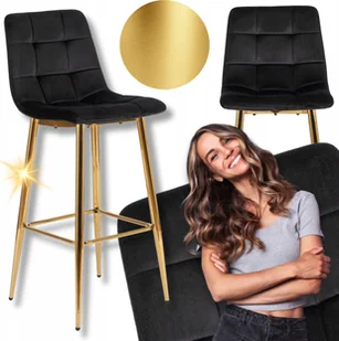 Hoker Krzesło Barowe z Oparciem Do Jadalni Glamour Welur Czarny Złoty ARIEL