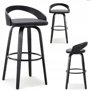 Skórzane Obrotowe Krzesło Barowe Z Drewna Giętego Z Oparciem 38 Czarne