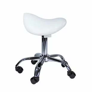 Taboret kosmetyczny bez oparcia z hydrauliczną regulacją wysokości. Siedzisko wyprofilowane w kształcie siodła zapewnia komfortową pracę bez poczucia zmęczenia. Uniwersalny wygląd taboretu wpasuje się w design każdego gabinetu kosmetycznego. Siedzisko pokryte wytrzymałą i odporną eko-skórą w kolorze białym ( wariant czarny dostępny tutaj ), którą można czyścić wybranymi preparatami do dezynfekcji. Wypełnione pianką odporną na odkształcenia.