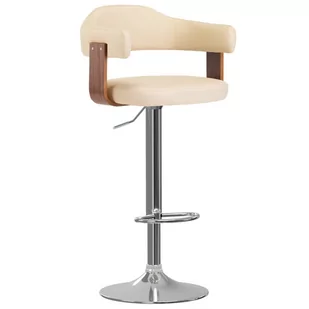 Mogą również obracać się w zakresie 360 stopni, zapewniając dużą elastyczność. Kolor: kremowy i brązowy Materiał wykonania ramy: gięte drewno orzechowe, chromowane żelazo, sztuczna skóra (55% poliuretan i 45% bawełna) Wymiary: 56,5 x 57,5 x (89 - 111) cm (szer. x gł. x wys.) Szerokość siedziska: 49,5 cm Głębokość siedziska: