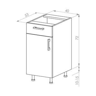 Bari plus szafka dolna lewa d1s-40_blum dąb kamienny to funkcjonalna szafka dolna do kuchni z drzwiami uchylnymi oraz pojedynczą szufladą. Wymiary prezentowanego modelu wynoszą 40 cm szerokości, 82 cm wysokości oraz 53 cm głębokości. Kolekcja kuchni komfort łączy elementy stylu nowoczesnego, rustykalnego oraz industrialnego. Imitowane na meblach kuchennych drewno naturalne idealnie odzwierciedla prawdziwą strukturę usłojenia dębu kamiennego. Kolekcja kuchni komfort wykonana została z trwałej pł