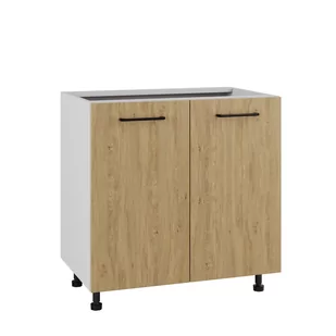 Bari szafka dolna d2-80 dąb kamienny to model wymiarach 80 cm szerokości, 82 cm wysokości oraz 53 cm głębokości. Prezentowana szafka dolna do kuchni posiada podwójne drzwi uchylne na zawiasach blum ze zintegrowanym hamulcem, które zapewniają cichą pracę mechanizmu. Model z kolekcji kuchni komfort posiada ciepły odcień frontów oraz matowe wykończenie powierzchni, które doskonale imituje strukturę dębu kamiennego. Bari to seria wiernie odzwierciedlająca wygląd mebli kuchennych z drewna naturalneg