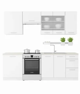 Wybieraj spośród aż 27 modułów lub 2 uniwersalnych kompletów o długości 180/240 cm oraz 260 cm. Kuchnia ma służyć Ci długo, dlatego oczekujesz od niej funkcjonalności oraz trwałości. Z tego powodu każdy z białych korpusów szafek kolekcji wyprodukowany został z najwyższej jakości płyty laminowanej o klasie higieny E1, niezwykle odpornej na warunki panujące w kuchni podczas gotowania. Fronty wykonano natomiast z płyty MDF o wysokim połysku, przepięknie komponującej się razem z mocnymi uchwytami stworzonymi z wysokogatunkowego metalu o wykończeniu podobnym do chromowanej stali. Do wyprodukowania kolekcji wykorzystano także najwyższej jakości szkło podwójnie hartowane, niezwykle odporne na uderzenia i zarysowania w eleganckiej wersji satynowej.