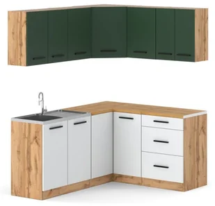 Kuchnia 3.2M Narożna Nowoczesna Duża Modułowa Wotan Butelkowa Zieleń Biały