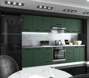 Kuchnia Danka 3.2M Narożna Nowoczesna Duża Biały Butelkowa Zieleń Szary Mat