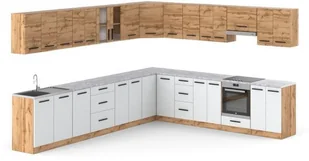 Kuchnia Narożna Duża 6.8M Modułowa Nowoczesna Wotan Dąb Wotan Biała Mat