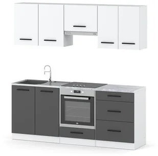 Kuchnia Nowoczesna Modułowa Mała Z Blatem 2.0M Biała Biały Mat Szary Mat