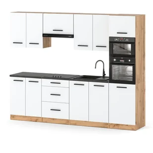 Kuchnia MARRA 2.6m to doskonały wybór dla osób szukających nowoczesnego i praktycznego zestawu kuchennego. Dzięki swojej funkcjonalności, trwałości i eleganckiemu designowi świetnie wpisuje się w każde wnętrze. Sprawdzi się zarówno w małych kuchniach, jak i większych przestrzeniach. Najważniejsze cechy produktu: