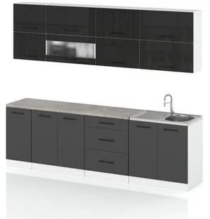 Meble kuchenne komplet kuchnia robo lux 2.6m zestaw szary mat czarny połysk