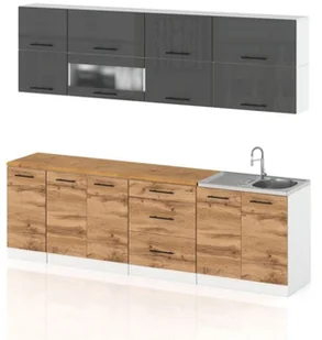 Meble Kuchenne Komplet Kuchnia Robo Lux 2.6m Zestaw Szary Połysk Dąb Wotan