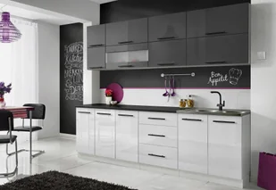 MEBLE KUCHENNE KUCHNIA SZAFKI MODUŁOWE BIAŁY POŁYSK SZARY POŁYSK 2,6M RICO