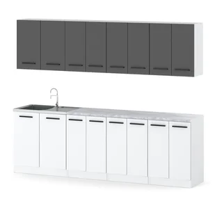 Kuchnia VERO 2.6m to nowoczesny zestaw mebli kuchennych, który doskonale wpasuje się w różne style aranżacyjne – od skandynawskiego, przez klasyczny, aż po industrialny. Dzięki eleganckiej i nowoczesnej kolorystyce, kuchnia zyskuje nie tylko funkcjonalność, ale również modny wygląd. Zestaw jest idealny dla osób, które cenią sobie prostotę, trwałość oraz łatwość w utrzymaniu czystości. Najważniejsze cechy produktu: