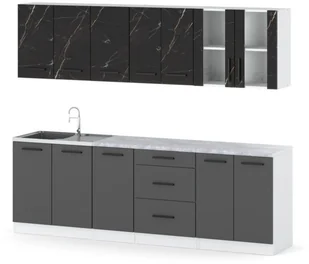 Meble Kuchenne Modułowe Z Blatem Duże Remino 2.6M Biały Szary San Sebastian