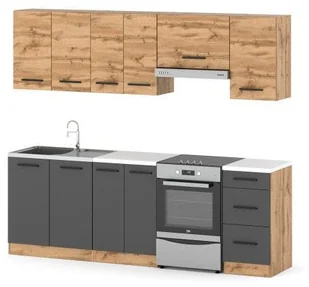 Meble kuchenne mokka 2.4m komplet modułowy nowoczesny szary dąb wotan