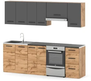 Meble Kuchenne Szare Z Drewnem 2.4m Zestaw Nowoczesny Modułowy Dąb Wotan