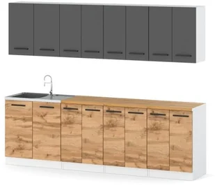 Meble Kuchenne Szare Z Drewnem Kuchnia Vero 2.6m Modułowa Dąb Wotan