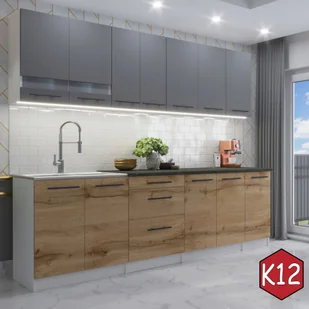 Meble kuchenne z BLATEM - 2,6 m - FLIP dąb wotan + szary [M1-K12]